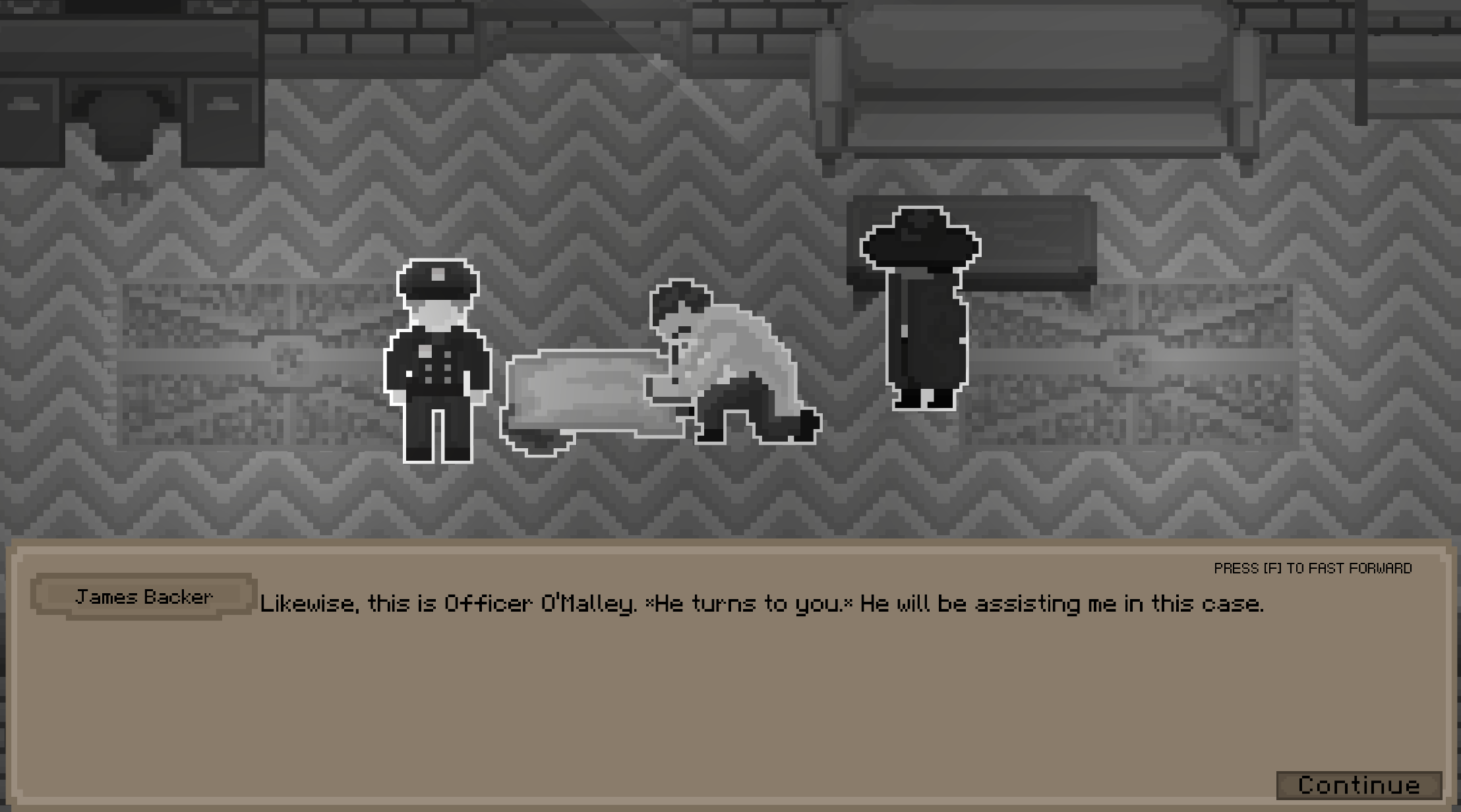 Dive into a monochromatic faithful recreation of Welfare Island in the 1930s. You play as Frank O'Malley a detective, stuck beneath boring paperwork, you are tasked to assist your supervisor in filing reports for a recent sudoku. But everything seems to add up a bit to perfectly. Following the few leads you have, a weird sensation bleeds into your retina, and you see something beyond your comprehension: Colour.